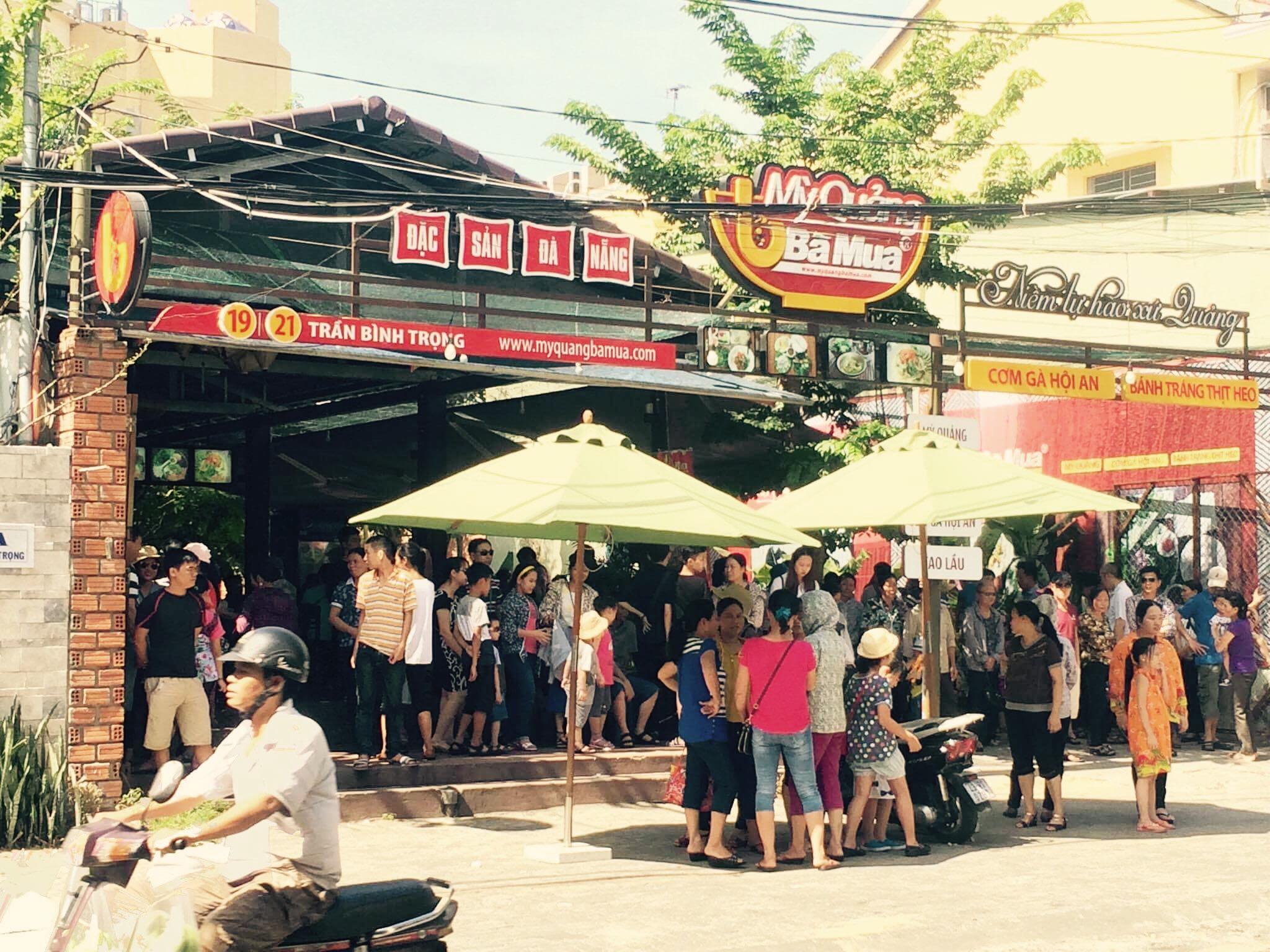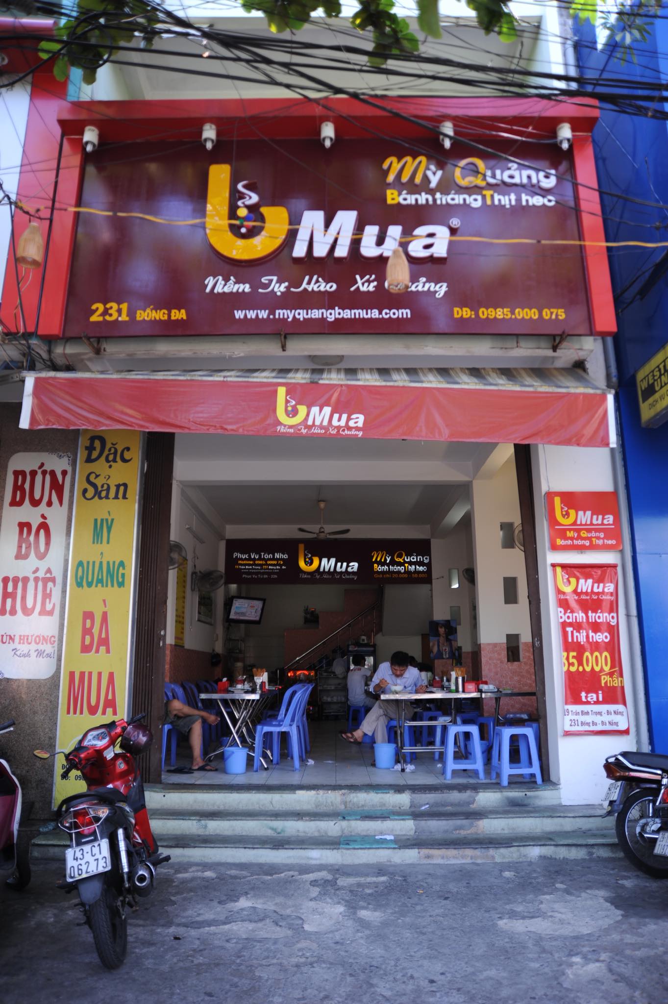 BÀ MUA - một nghệ nhân ẩm thực xứ Quảng, Bà có hơn 40 năm kinh nghiệm nấu nướng các món ăn miền Trung và đồng thời là CHỦ sở hữu Hệ Thống Mỳ Quảng Bà Mua nổi tiếng nhất Đà Nẵng. Hệ thống mỳ Quảng Bà Mua với không gian rộng rãi, nằm tại vị thế trục đường chính nên dễ dàng đi lại và tìm kiếm. Mỳ Quảng Bà Mua đưa đến cho thực khách nhiều loại mì quảng như: lươn, mì gà, mì bò, mì cá lóc... Điều đặc biệt ở đây là Gà làm từ thịt gà ta, ăn rất chắc thịt, được tẩm ướt gia vị rất thấm. Rau sống rất ngon, mỗi người được cho kèm với 1 dĩa rau nhiều loại: cải con, giá, bắp chuối, cải mầm.... Quán phục vụ cả ngày và có cả một số thức uống dùng kèm.
